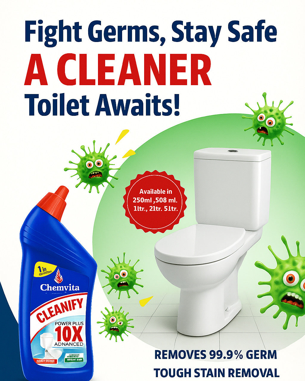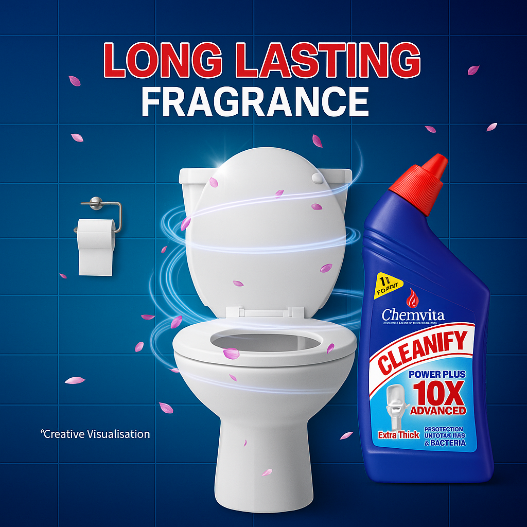 Cleanfy Toilet Cleaner Power Plus 10X Advanced is your ultimate hygiene partner for a sparkling clean toilet. Its extra-thick 10X advanced formula clings to the bowl, penetrates deep into stains, and removes limescale effectively. With germ-killing action that eliminates 99.9% of bacteria and viruses, it ensures maximum protection for your family. Along with its powerful cleaning, it leaves behind a long-lasting fresh fragrance that keeps your bathroom smelling clean.